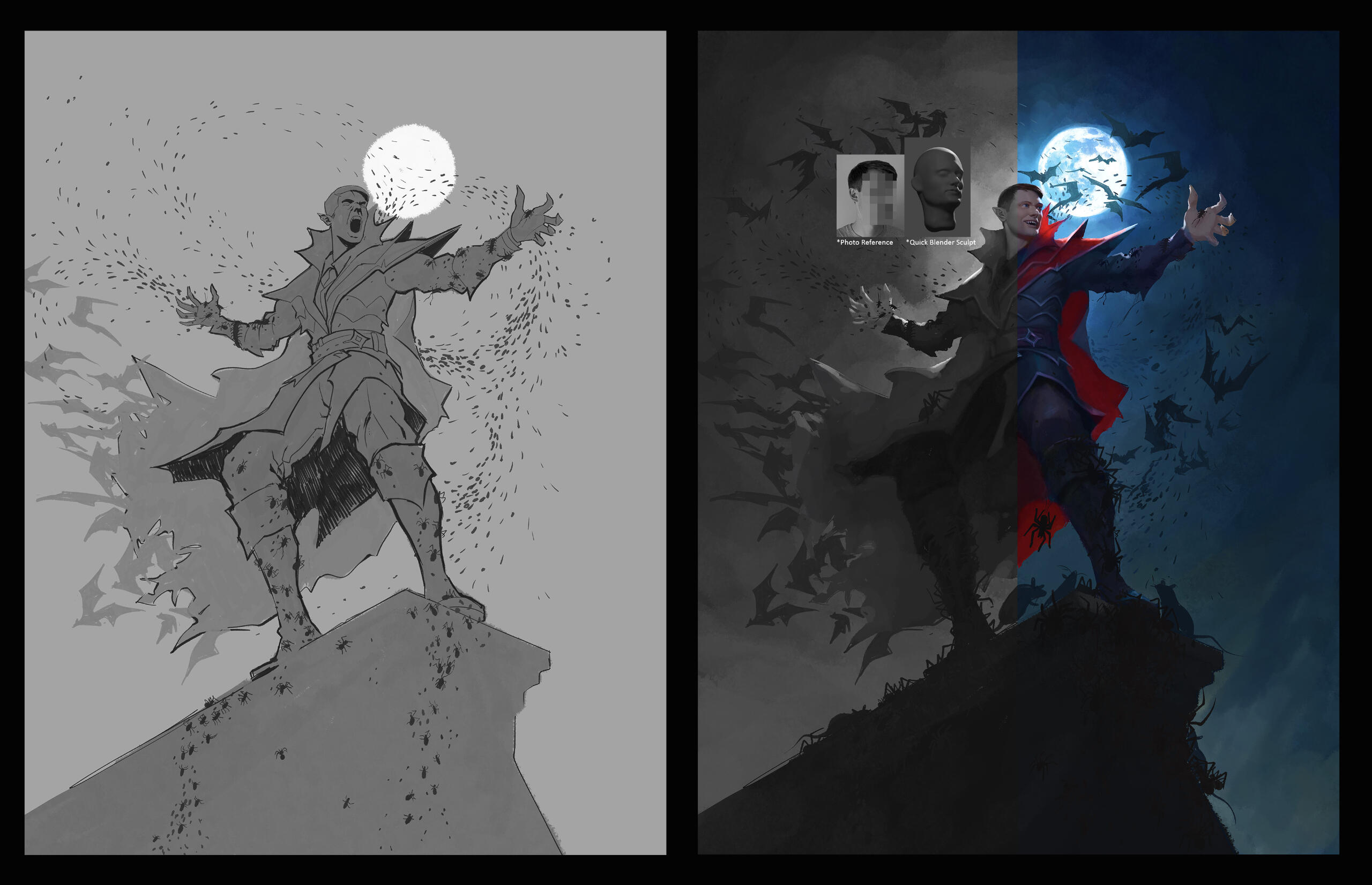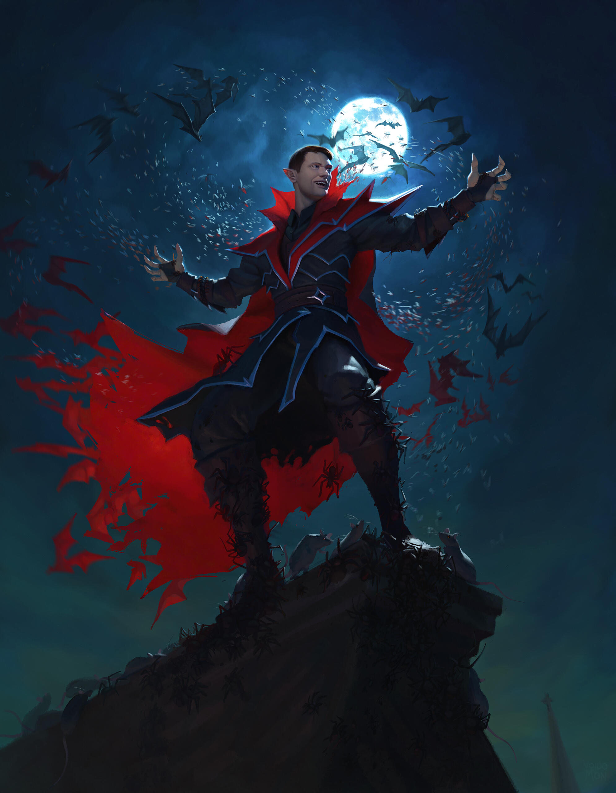This one was a custom request that required the character to have someone's likeness. The assignment was a "swarm master vampire", with swarms of bats, rats, insects, spiders, etc. - Regal/refined feel, but with and animalistic feel.
